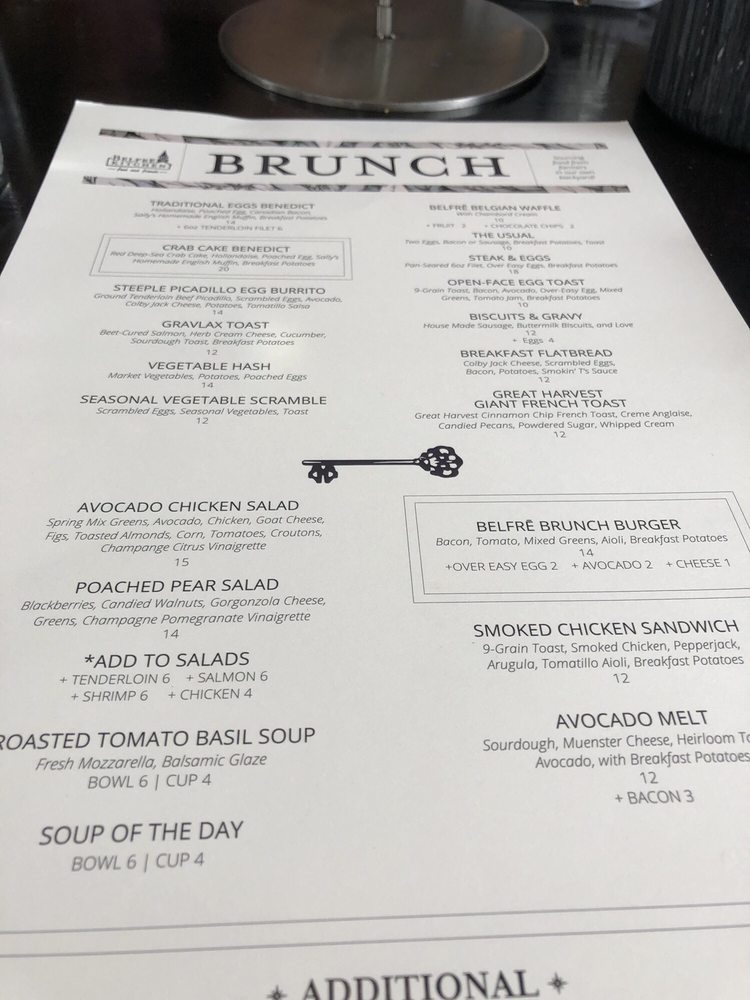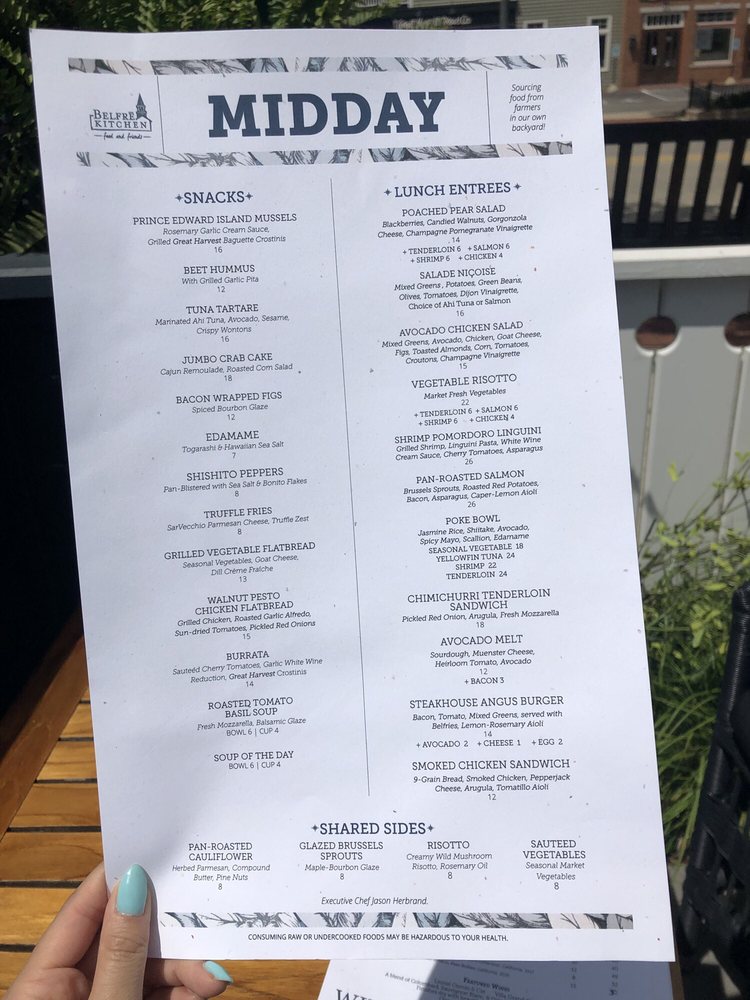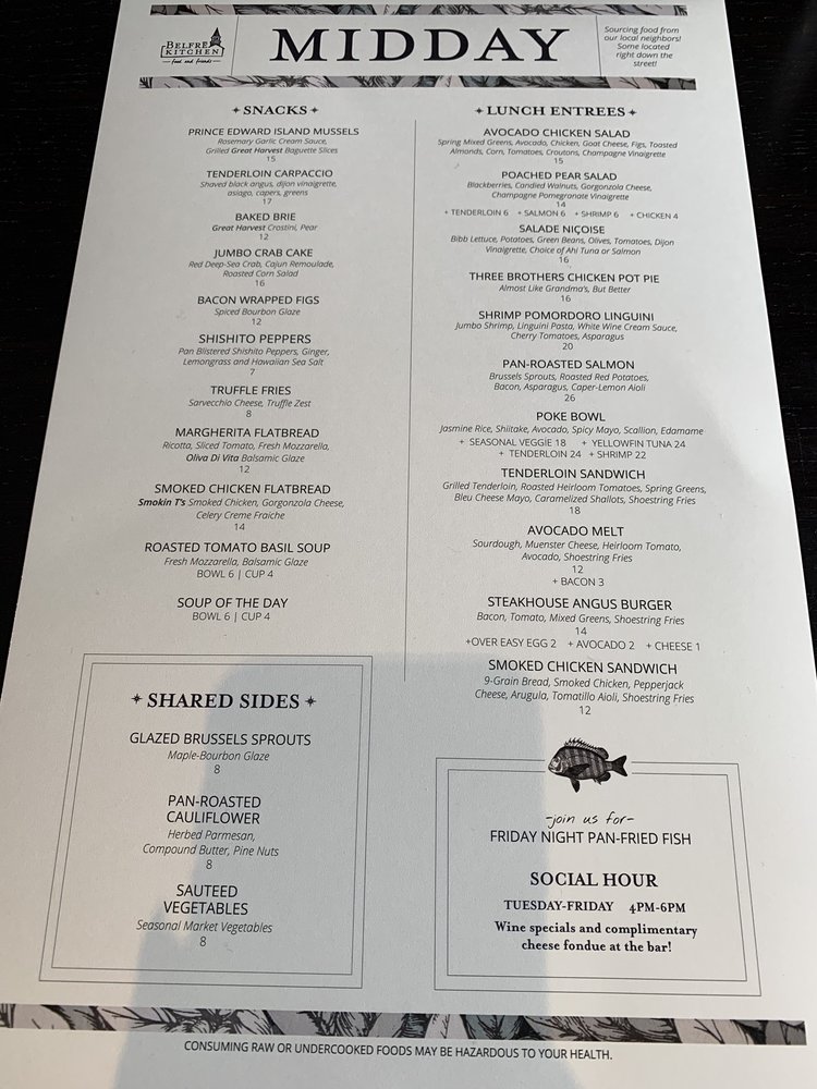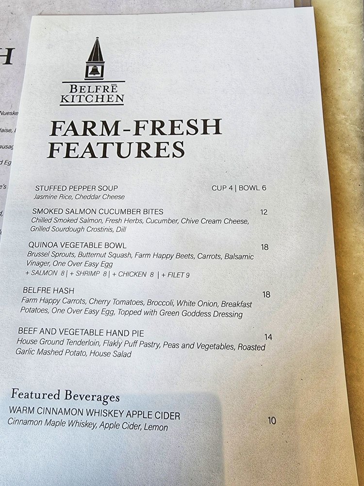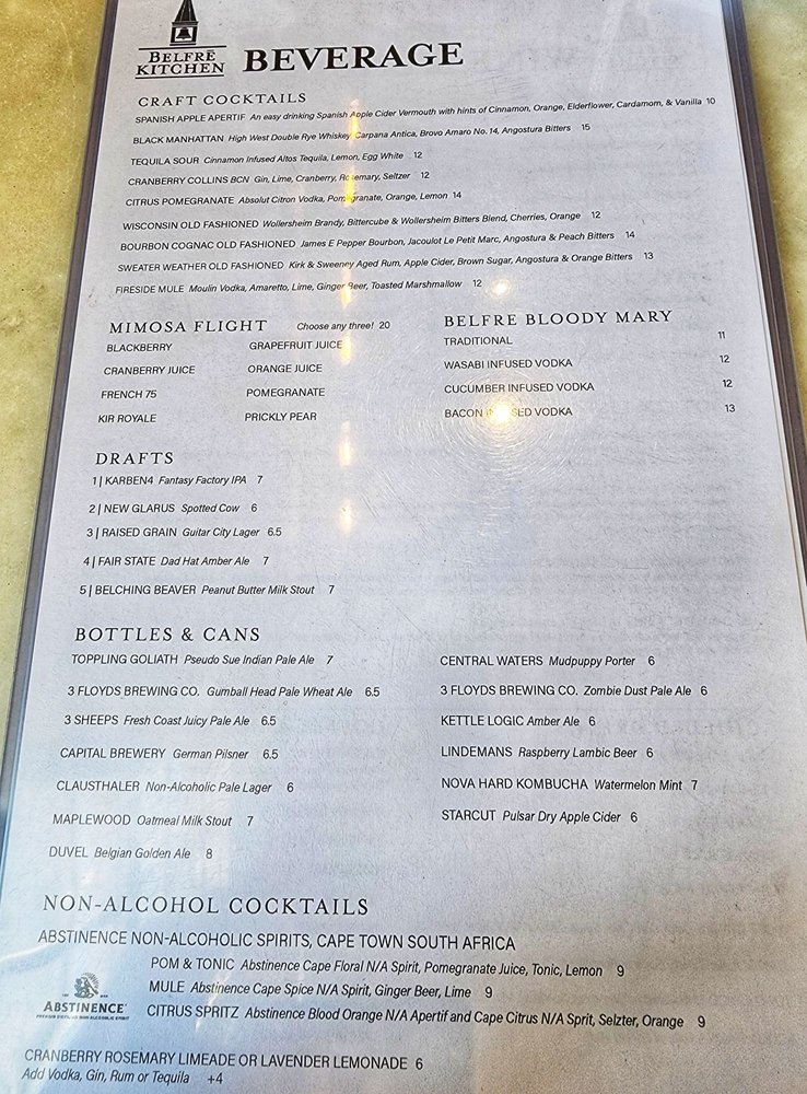 Introducing the menu of Belfre Kitchen, a charming restaurant in Delafield, WI, specializing in Tapas/Small Plates and New American cuisine. With a focus on fresh ingredients and unique flavors, Belfre Kitchen offers a variety of options for breakfast, brunch, lunch, and dinner. From Bacon-Wrapped Figs with Spiced Maple-Bourbon Glaze to Maryland Crab Cakes and Roasted Cauliflower with Herbed Compound Butter, the menu is filled with delectable dishes. Vegetarian options are plentiful, and the restaurant also caters to various dietary preferences. The ambiance is casual yet classy, with outdoor seating available. The full bar offers a selection of wines, cocktails, and beers to complement your meal. With excellent service and a cozy atmosphere, Belfre Kitchen is a must-try dining destination for food enthusiasts seeking a memorable culinary experience.